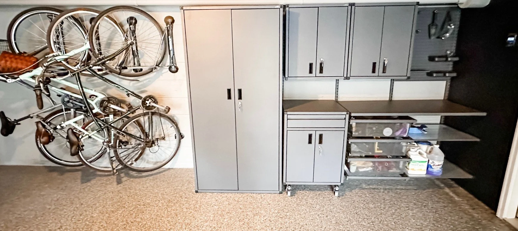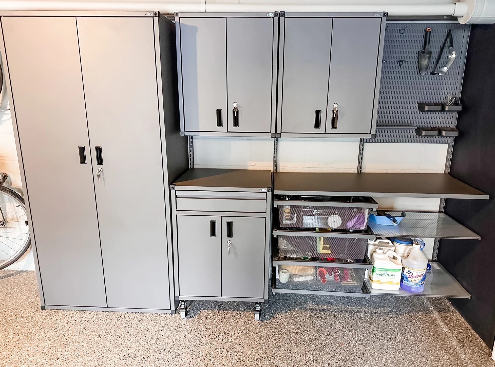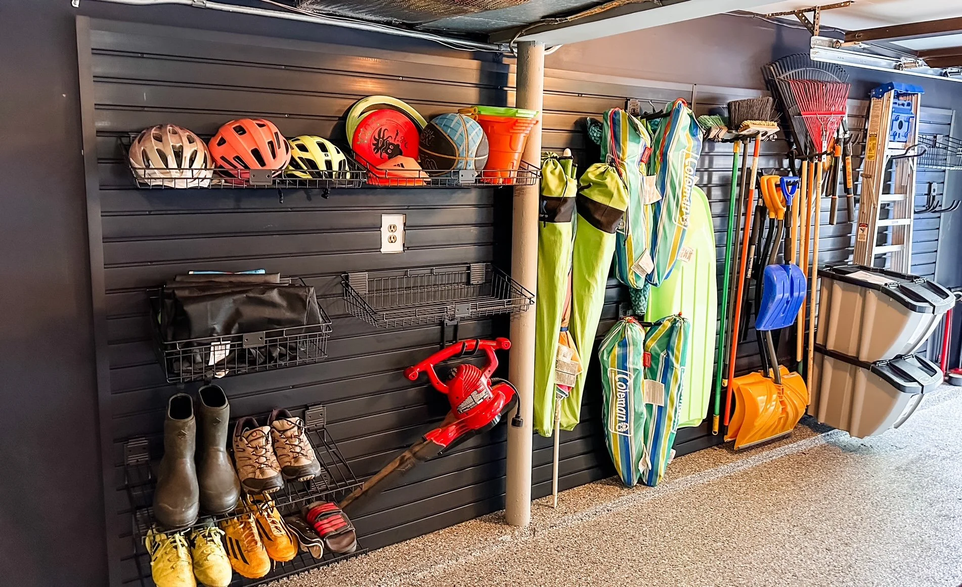 Talk about a transformation! This garage makeover is dramatic- Walls Refinished ✅ New Floors ✅ Garage System ✅ Check out the before & after pictures of the newly-renovated space. We created a home for everything in the garage and still have space to grow. These systems provided ample storage and flexibility for this family’s needs. 📷 @itsorganized