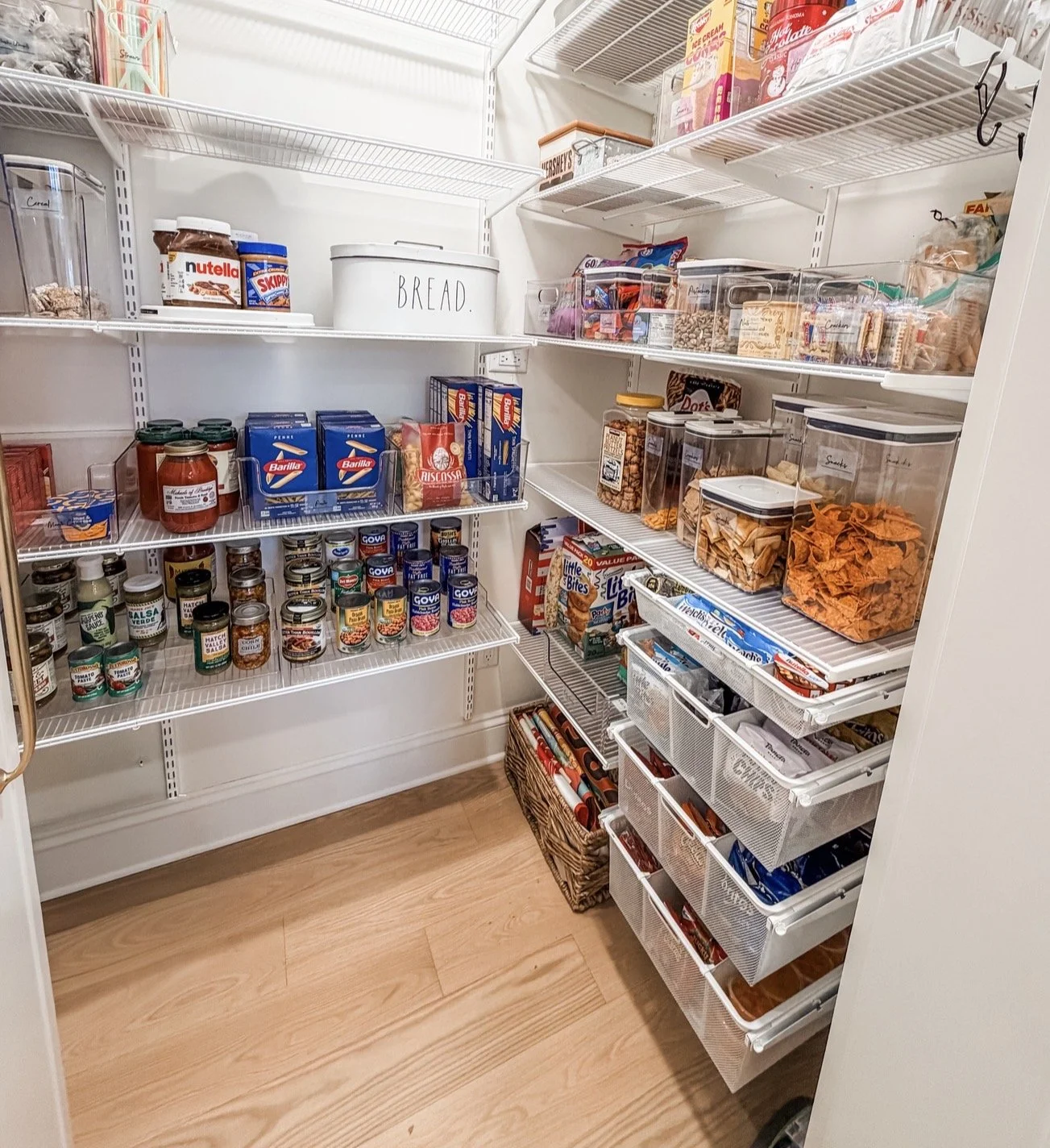 It's the #perfecttime for a #pantry refresh. Check what's expired, what you can donate and incorporate organization products to help maintain the system. This pantry project included incorporating drawers for snacks and products that fit on the shelves to #maximize the storage 📷 @itsorganized #pantrymakeover #pantryorganization